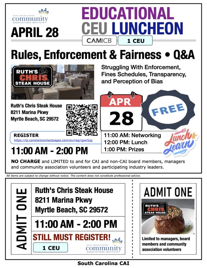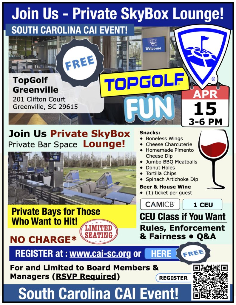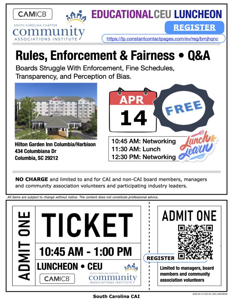 No charge and limited to and for CAI and non-CAI board members, managers and community association volunteers and participating industry leaders.