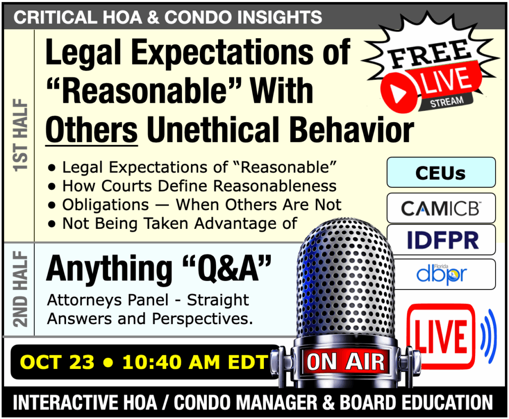 In the community association world, attorneys constantly remind boards and managers to act in a “reasonable” manner. But what does “reasonable” actually mean in practice and who decides? The standard is filled with gray areas and broad